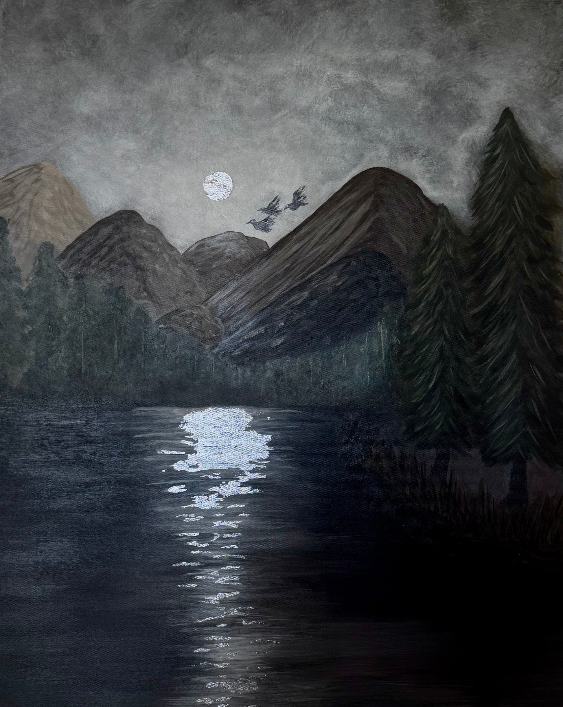 I titled this piece Haven – Under Watchful Wings because it captures that sacred feeling of being sheltered and surrounded by love and peace, a safe refuge for the soul.