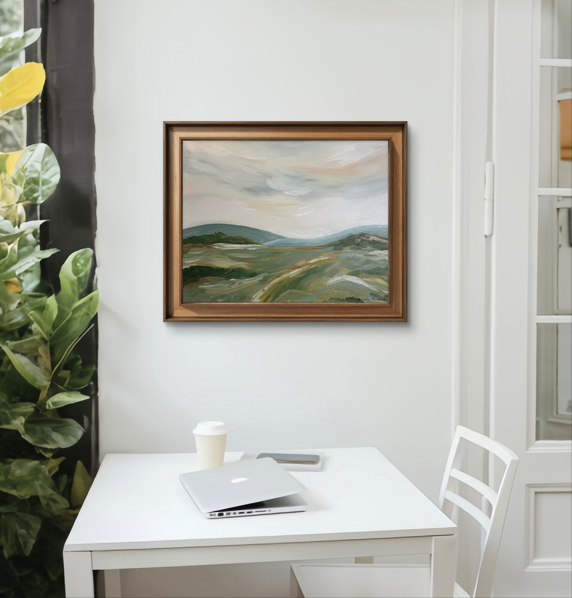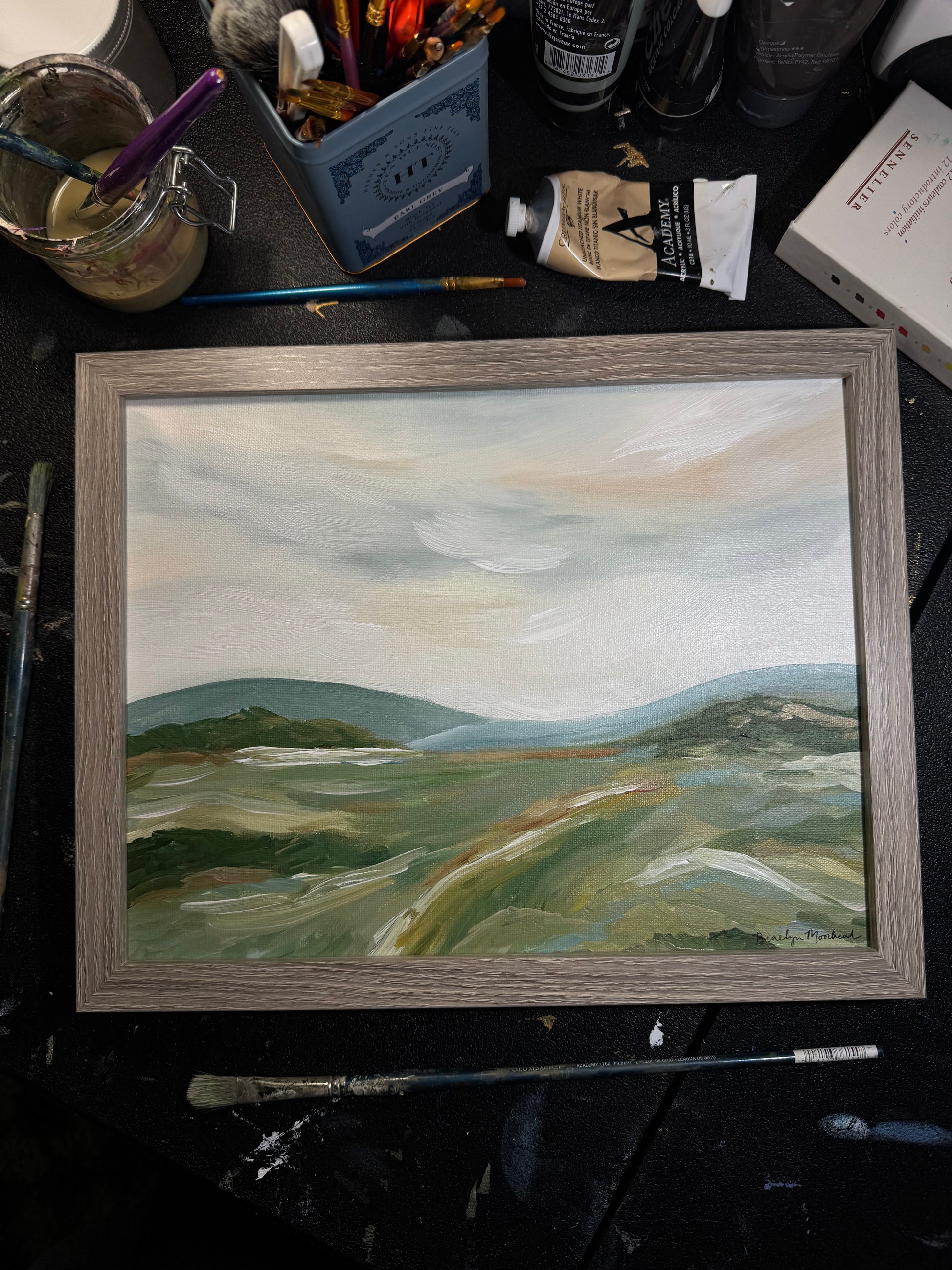 Life is never truly still—it moves like the wind, flowing through the foothills, shifting with every season. “Untethered” is a reflection of that fluidity, capturing the beauty of change and the art of letting go. With rich, earthy tones of ochre, rust, deep blues, and soft greens, this piece evokes a sense of movement, freedom, and grounding all at once.